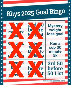 Overall, I’ve gotten very lucky. The middle square is quite a nice one as I’ve already got a 50 before I’m 50 booked in, and a second one I’m relatively sure of hitting, however I hope that doesn’t make me lazy, especially as two of them require me to be fit.
