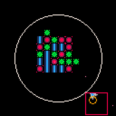 The solution? Don’t have a hitbox. Determine that a bullet is outside of the white circle, and if the colour of the pixel at the bullet’s x & y co-ordinate is not black, then determine a hit. This was applied and fixed.