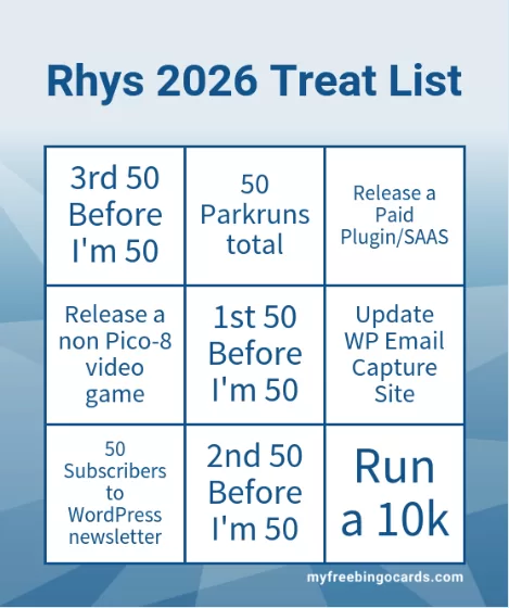 Finally rebuild Winwar Media to my liking – Success🎉: The bingo card helped here as I was pushed to achieve this towards the end of 2025. In the end, the new site went live on 29th December 2025. Is it finished? No. Is it better than it was? Yes. Can I build and iterate things on top of it? Indeed I can.